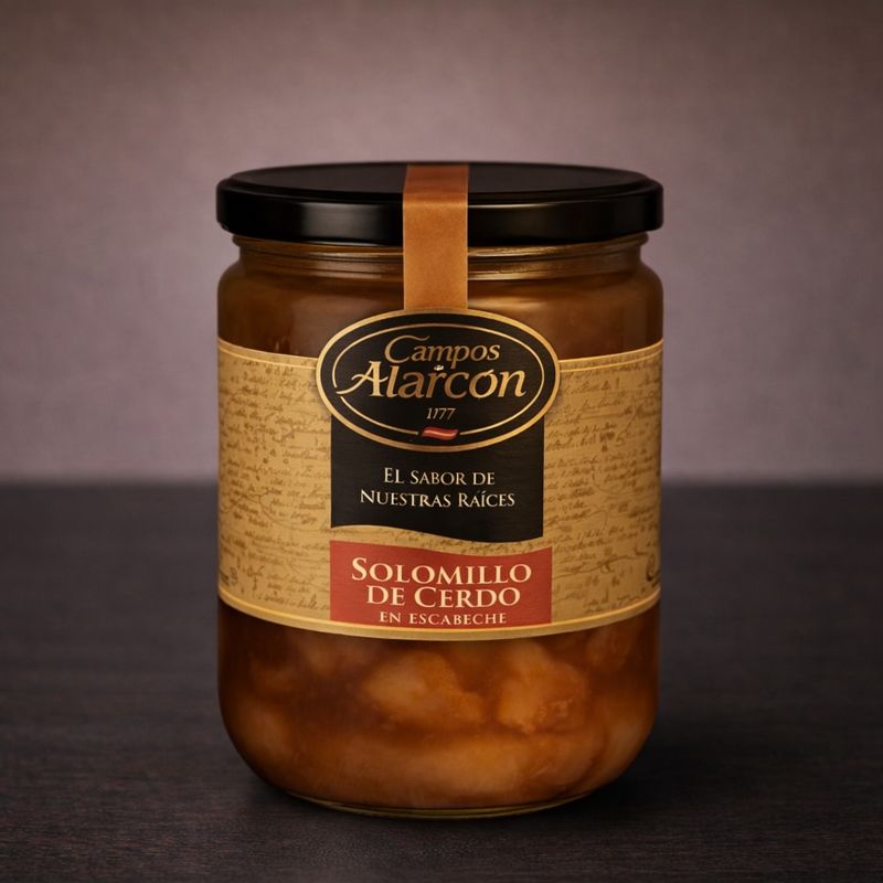 el solomillo de cerdo en escabeche, un plato que combina la técnica de la conservación con la sutileza del sabor.